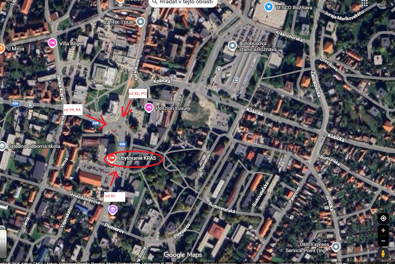 Adresa ubytovania: Šafáriková 52, 04801 Rožňava (GPS: 48.6580912, 20.5309488)