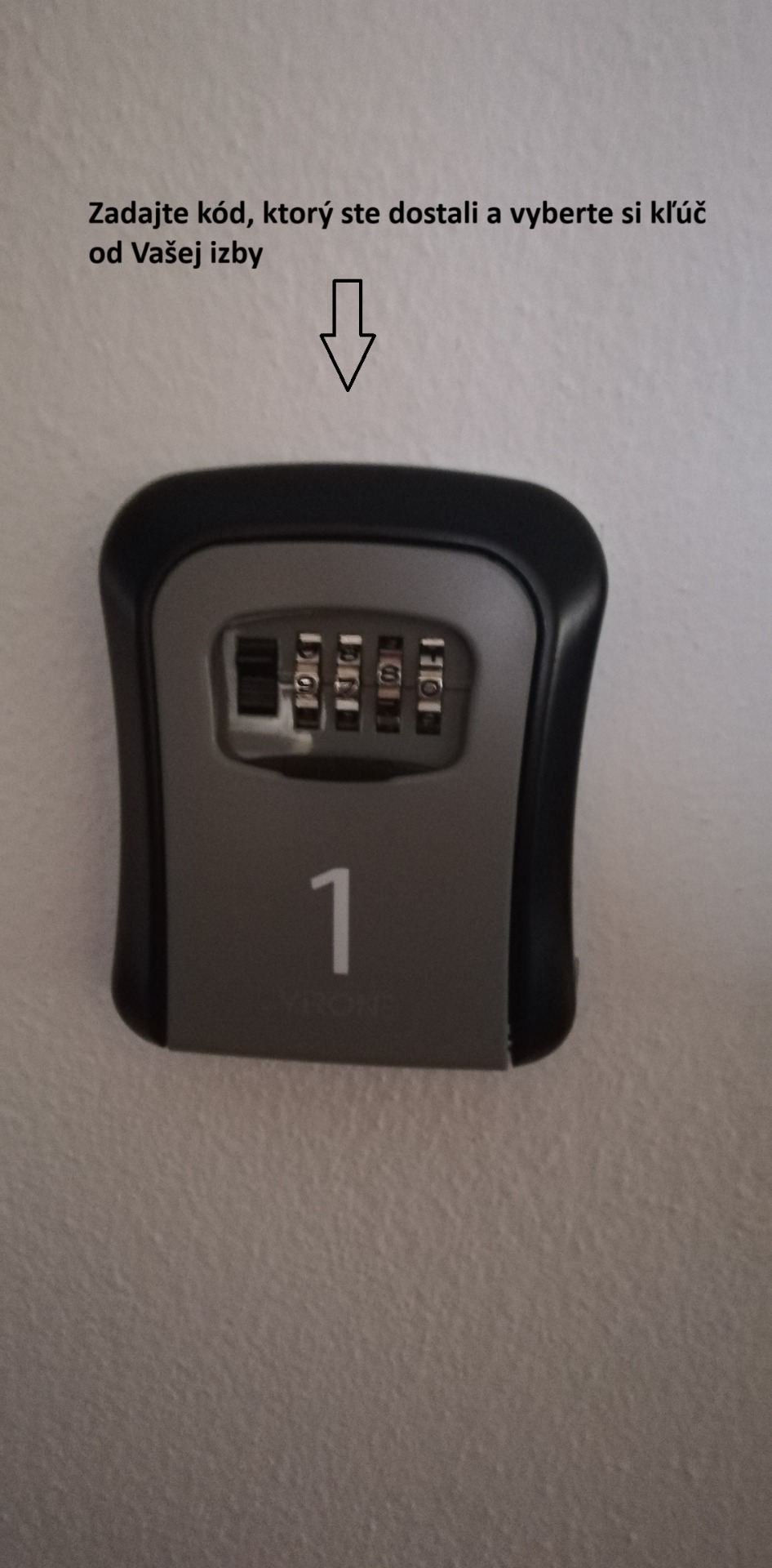 Zo schránky na chodbe na 3. poschodí si vyberte kľúč (použite PIN kód, ktorý ste dostali)
