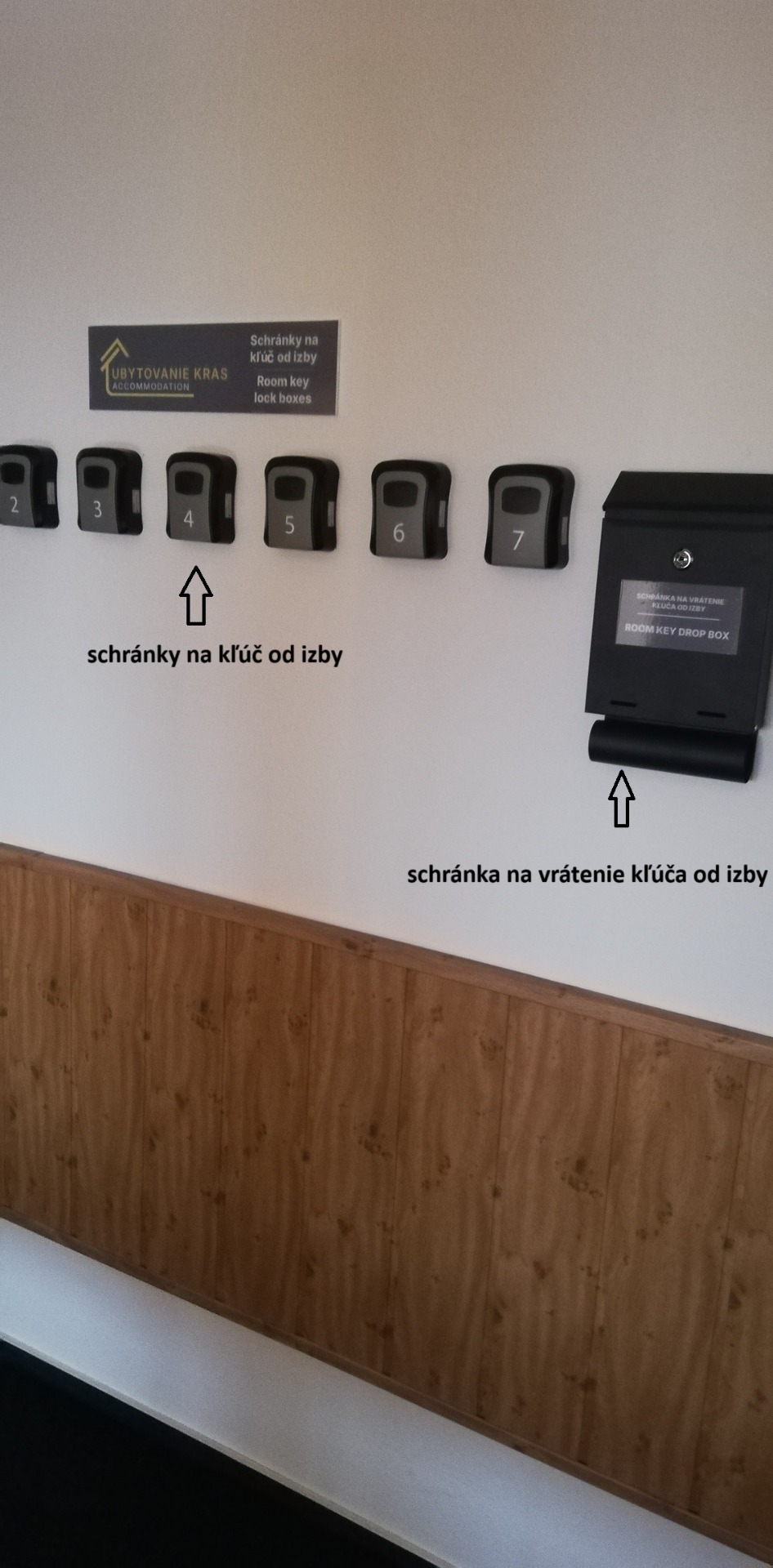 Pri odchode vhoďte kľúč do "schránky na vrátenie kľúča od izby".